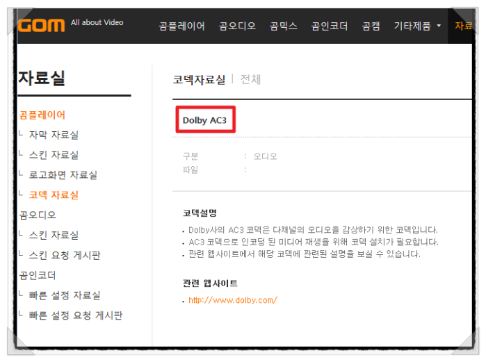 곰플레이어 통합코덱 설치 방법