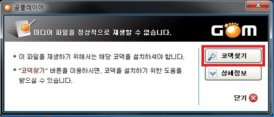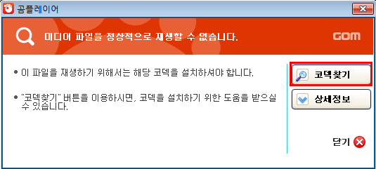 - 이 경우, 통합코덱이 제대로 설치되지 않았거나, 해당 파일 포맷이 지원되지 않을 수 있습니다. 코덱 업데이트를 확인해 보세요.