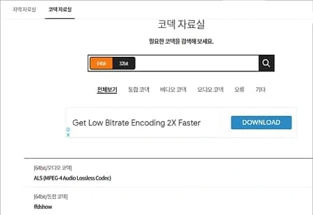 이때 통합코덱을 설치하면 다양한 포맷을 손쉽게 재생할 수 있습니다.