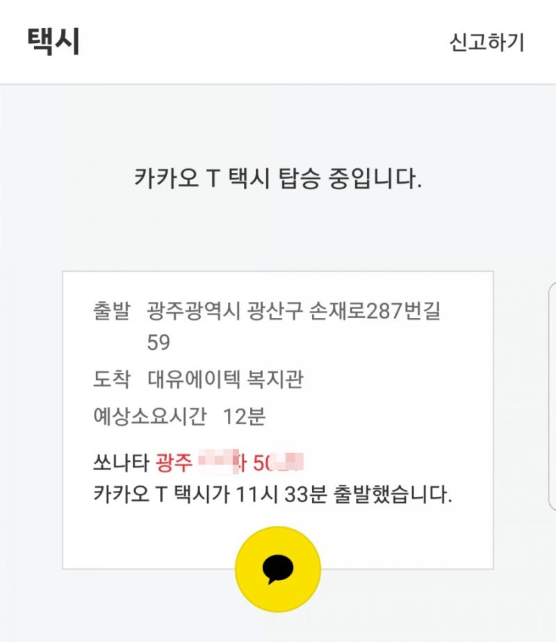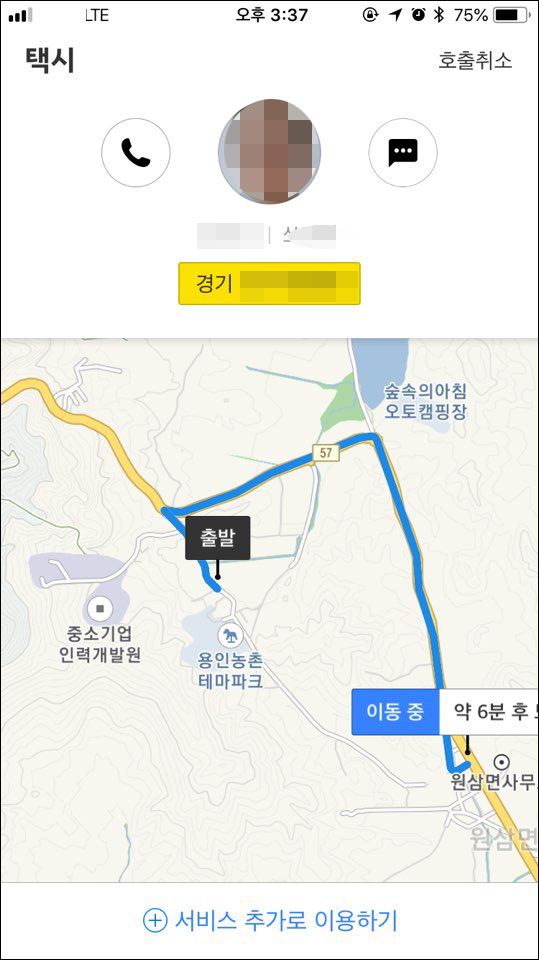 택시 호출이 완료되면, 앱에서 배차된 택시 정보를 확인할 수 있습니다.