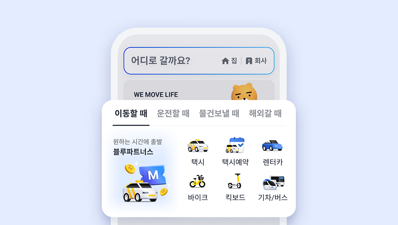 카카오톡과 연동되어 있어 사용자에게 친숙한 인터페이스를 제공하며, 택시뿐만 아니라 대리운전, 카풀 등 다양한 서비스도 이용할 수 있습니다.