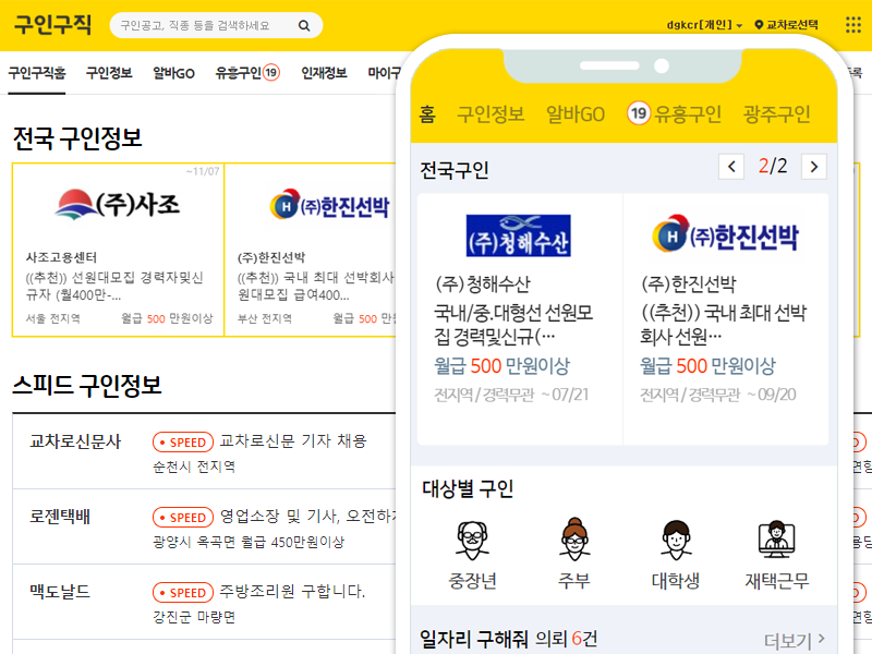 구인구직사이트의 장점