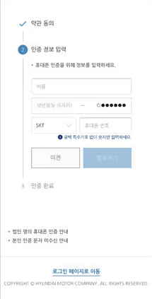 - 휴대폰 번호를 입력하고 인증번호를 전송받습니다.