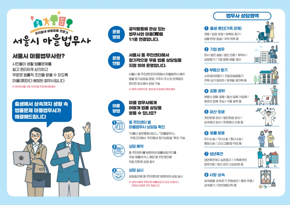 - 민사, 형사, 가사 사건 등 다양한 분야에 대해 상담이 가능합니다.