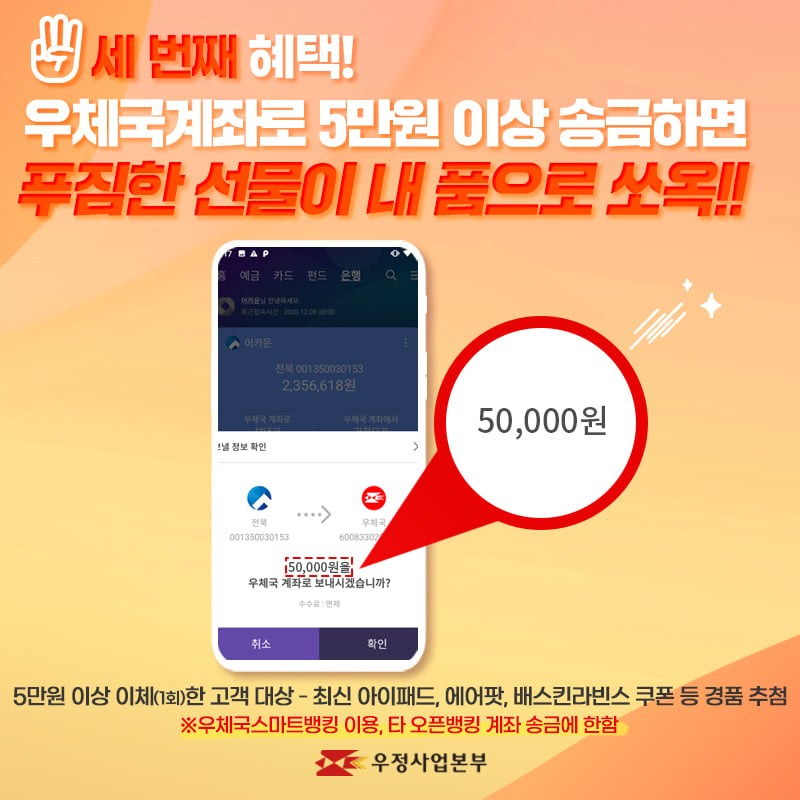 - 비대면 계좌 개설 : 우체국 창구를 방문하지 않고도 스마트폰으로 계좌를 개설할 수 있습니다.