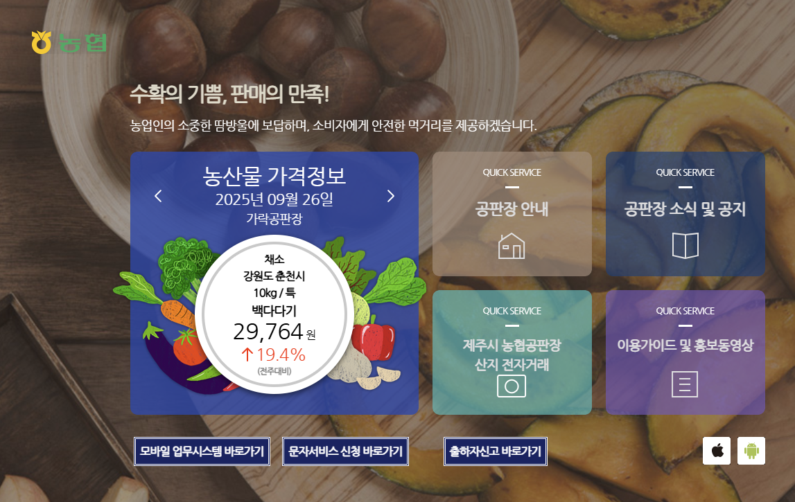 더욱 자세한 정보는 농협 공판장 인터넷 통합거래시스템 공식 웹사이트를 방문해 주시기 바랍니다.