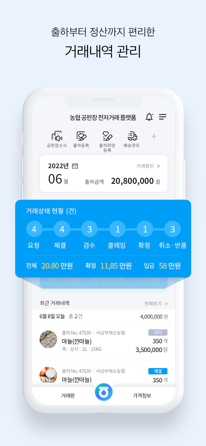 이용자는 반드시 농협과 거래약정을 체결해야 하며, 거래를 위해서는 공판장에 구매자로 등록해야 합니다.