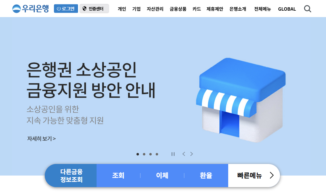 - 우리은행 인터넷뱅킹 홈페이지 방문 : 먼저 우리은행 인터넷뱅킹 홈페이지로 접속합니다.