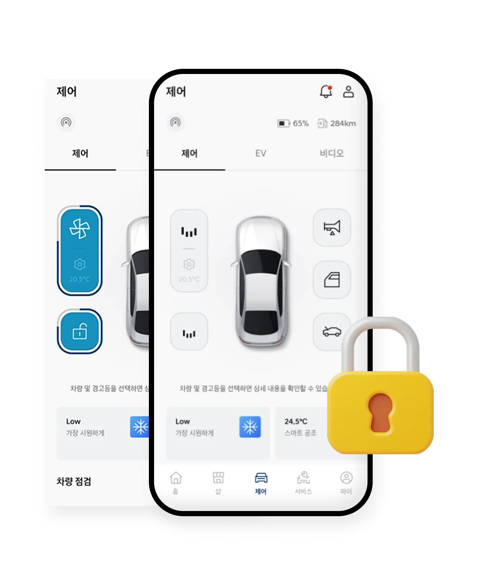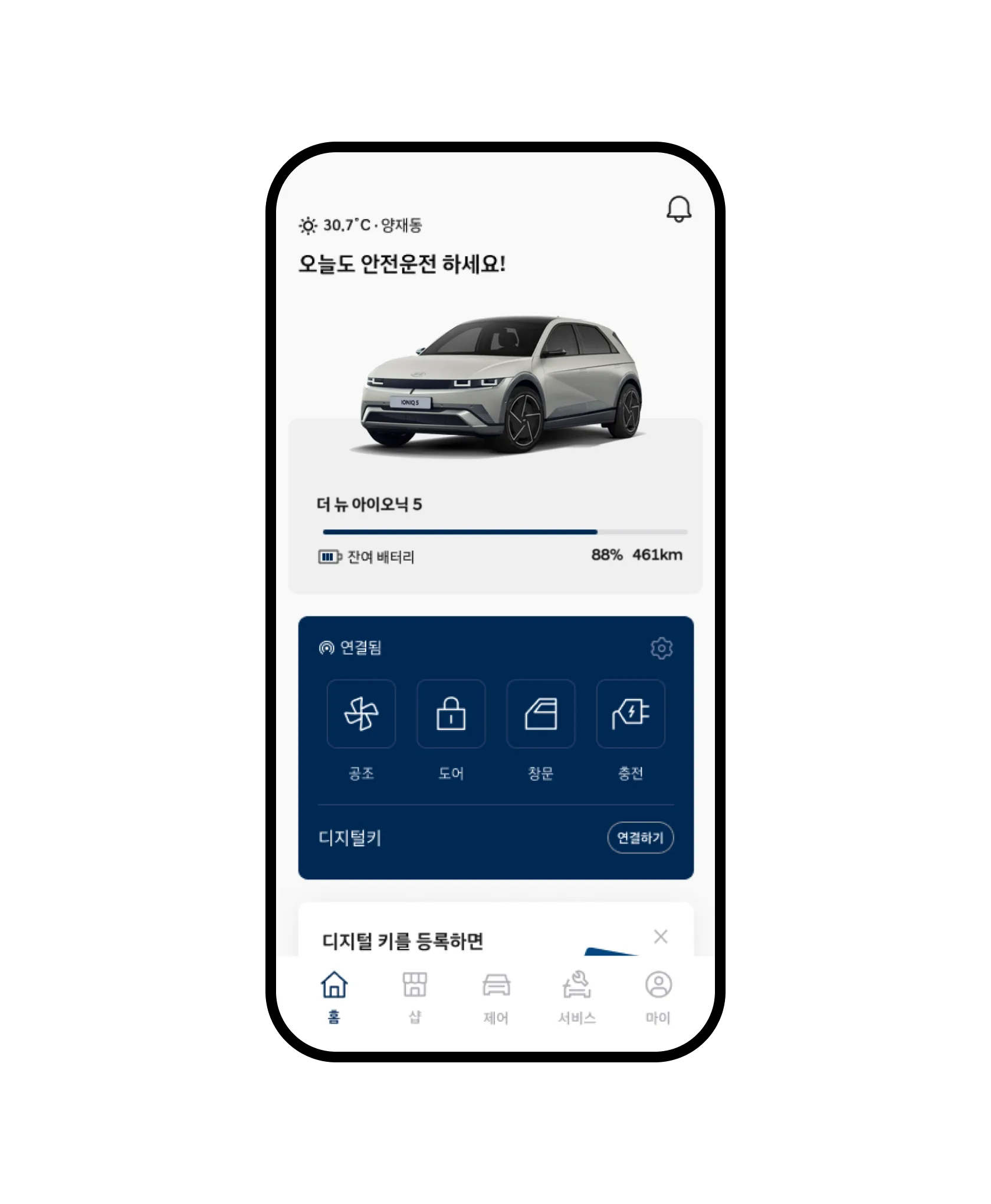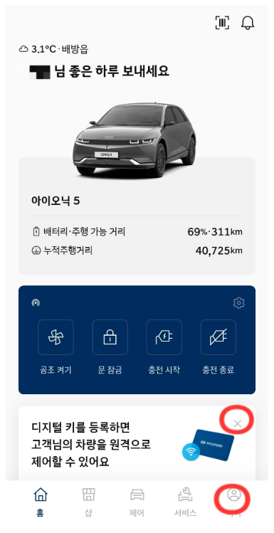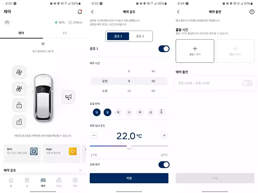 차량 문 잠금/해제, 공조 시스템 제어 등 차량의 여러 기능을 원격으로 제어할 수 있는 기능이 지원됩니다. 이는 특히 날씨가 좋지 않은 날에 유용합니다.