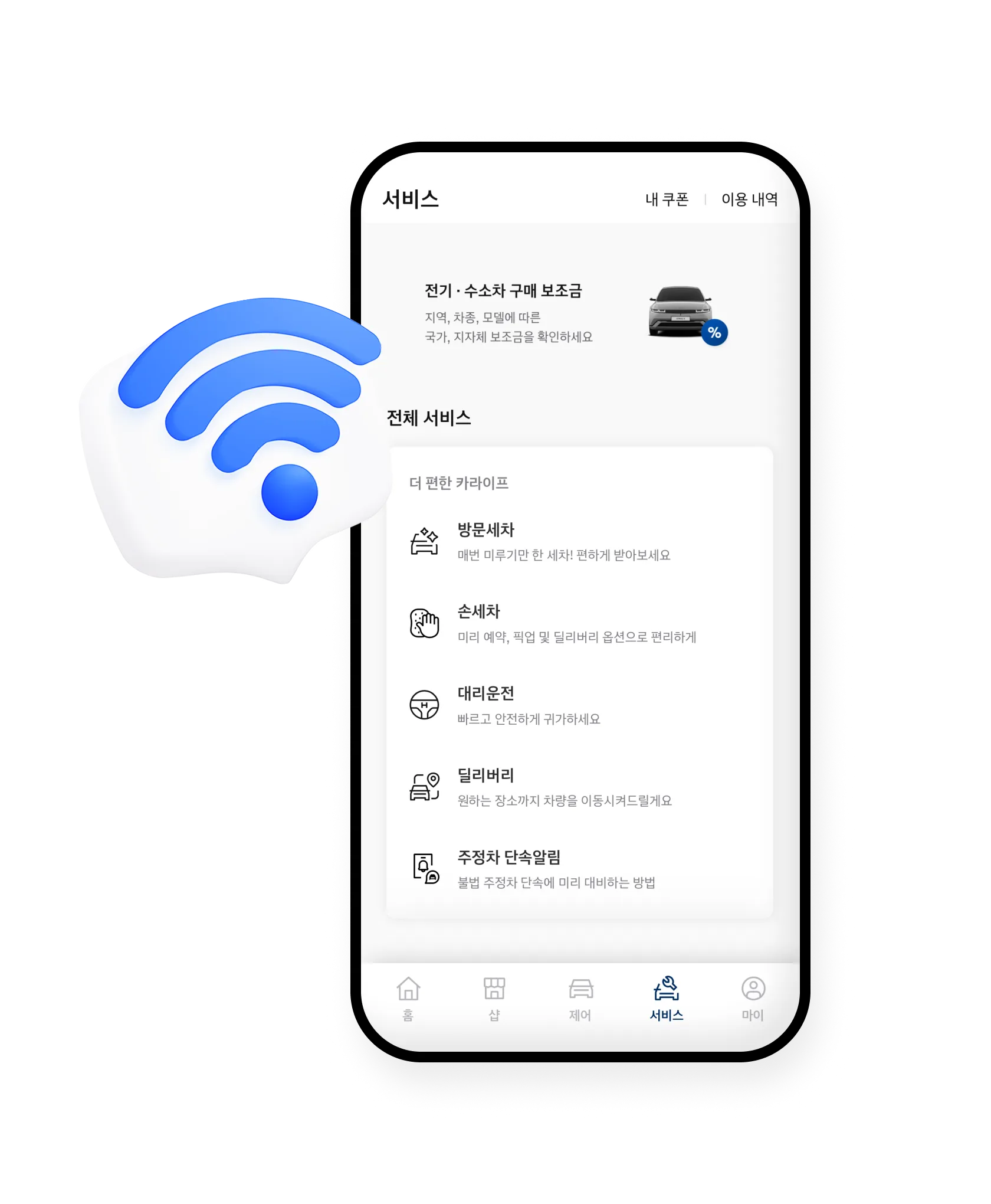 차량의 상태를 체크하고, 필요한 정비를 예약하는 등 다양한 기능을 통해 차량 관리의 불편함을 최소화합니다.