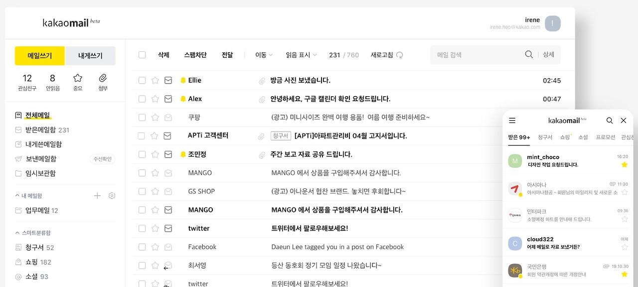 앱을 통해 이동 중에도 편리하게 메일을 체크할 수 있어 매우 유용합니다.