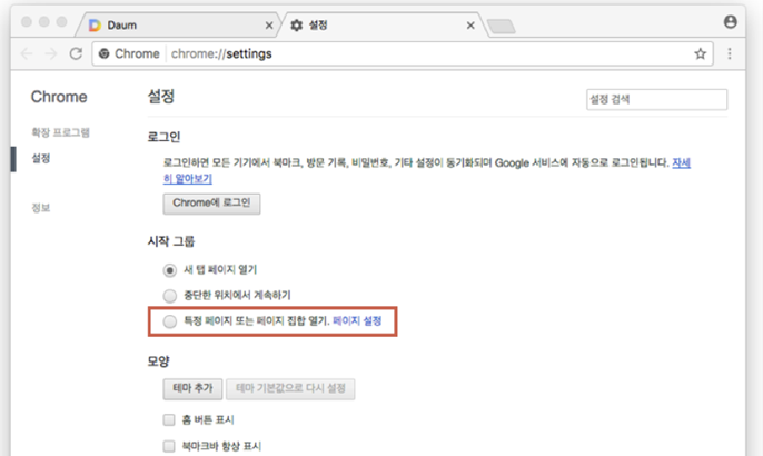 다음 시작페이지 설정 방법