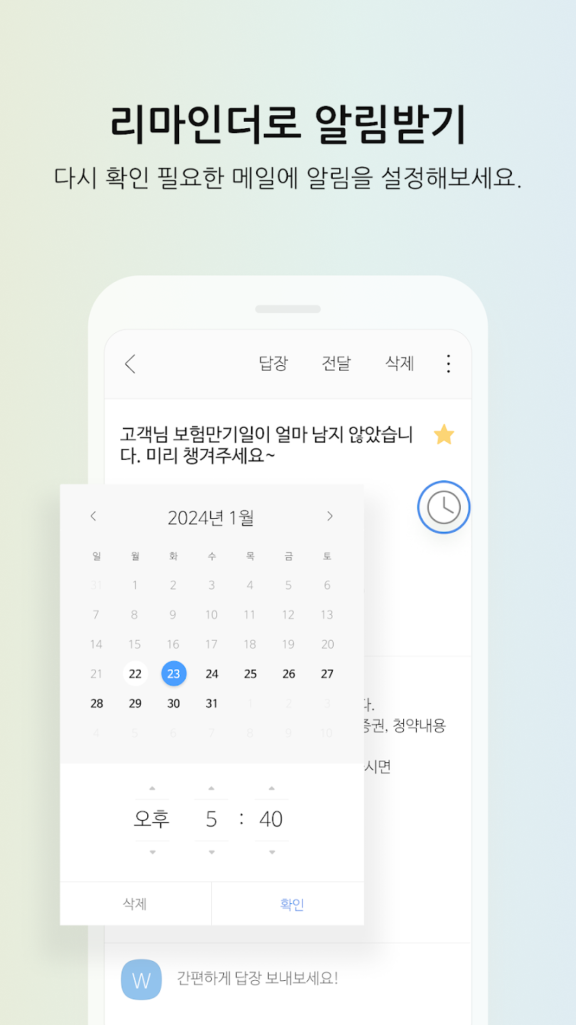 - 메일 확인 : 모바일에서도 동일하게 메일을 확인하고 관리할 수 있습니다.