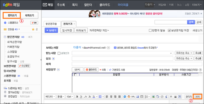 다음 메일 사용 방법