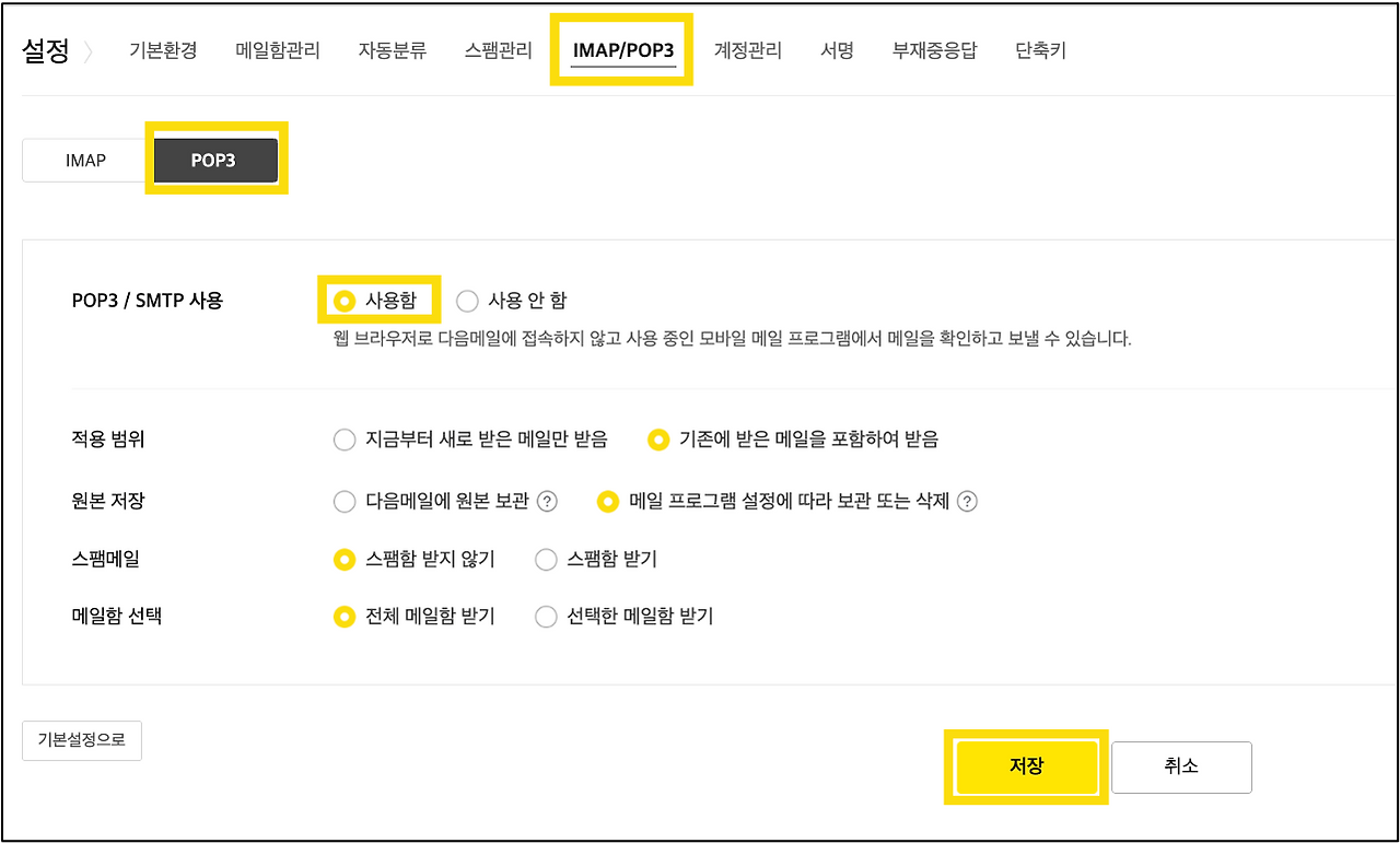 다음 메일의 환경설정은 사용자가 원하는 대로 메일 서비스를 최적화할 수 있도록 도와줍니다.